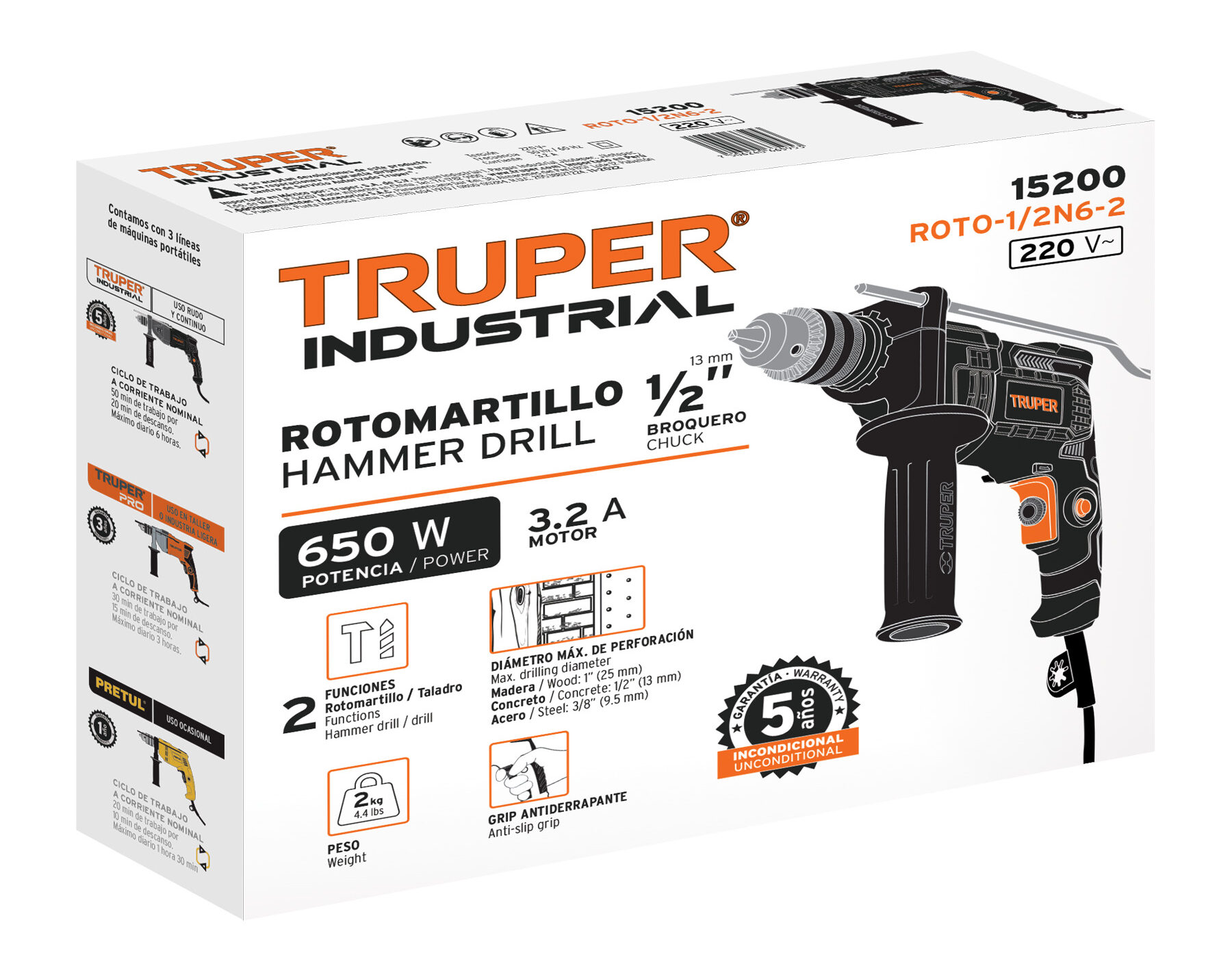 -Para perforación en concreto, madera y metal.